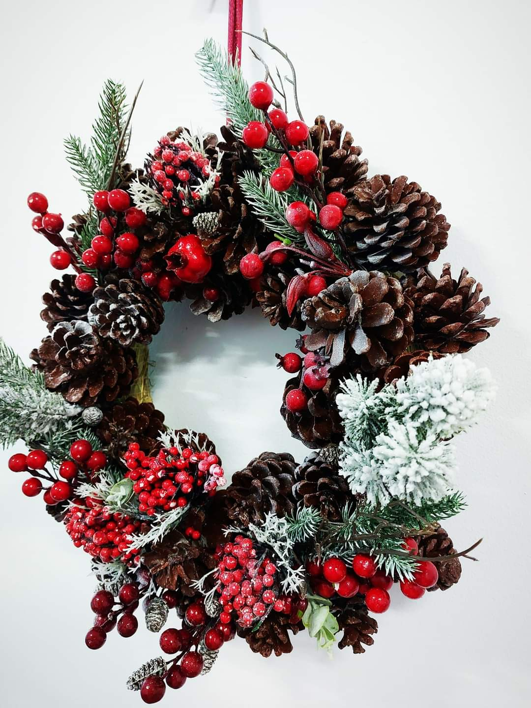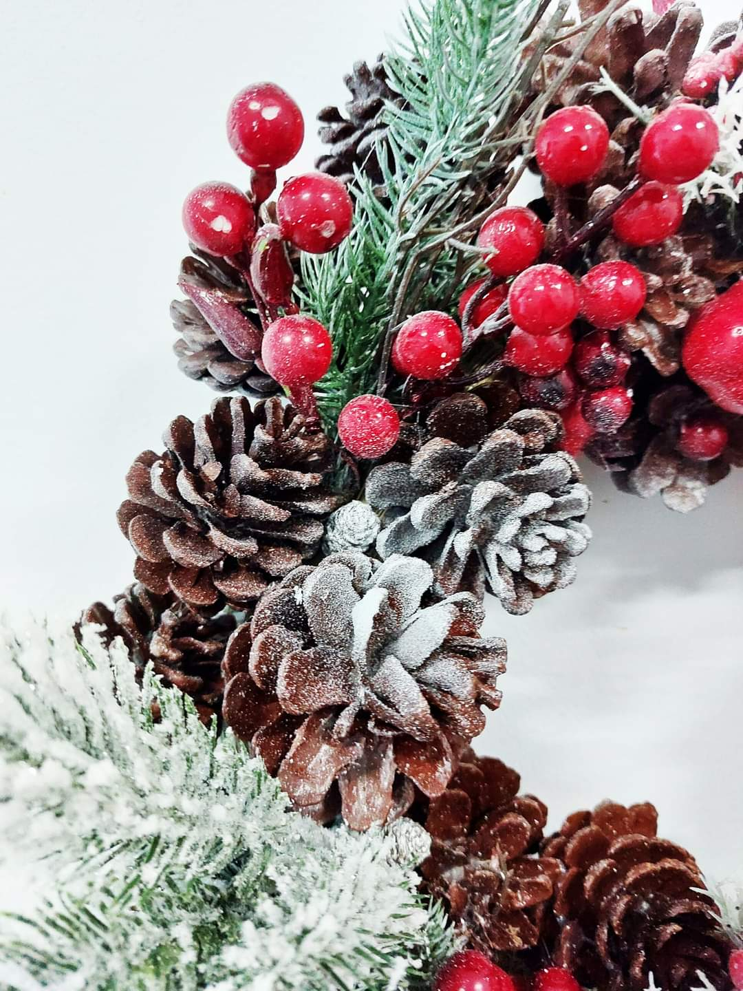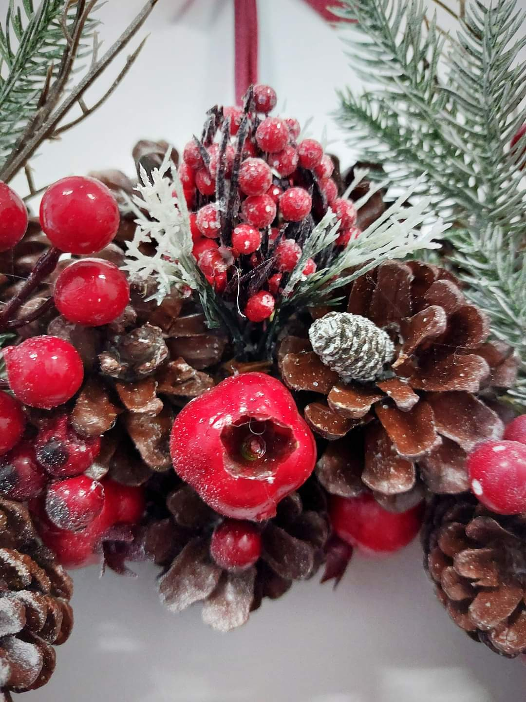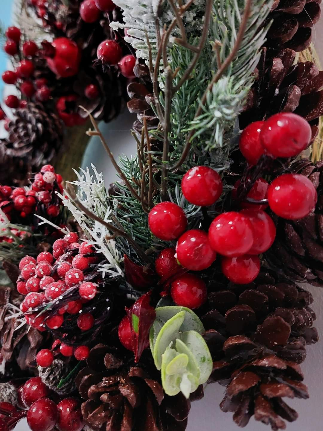 Coronita de Craciun, tematica macese, handmade, 35 cm, elemente naturale.