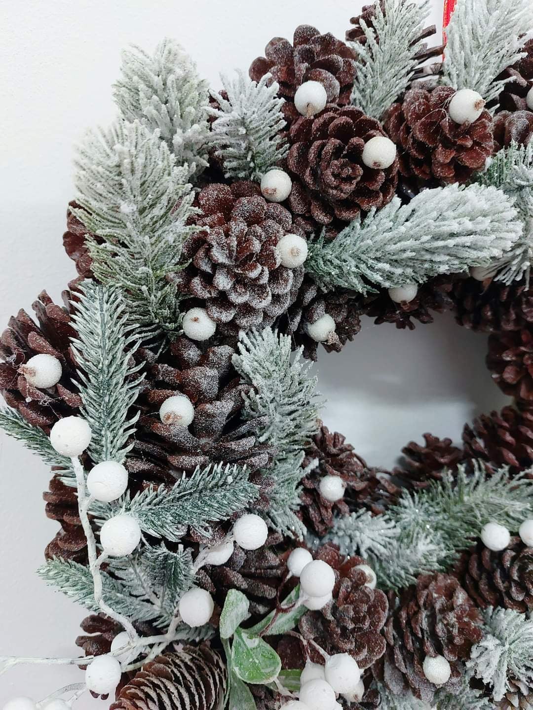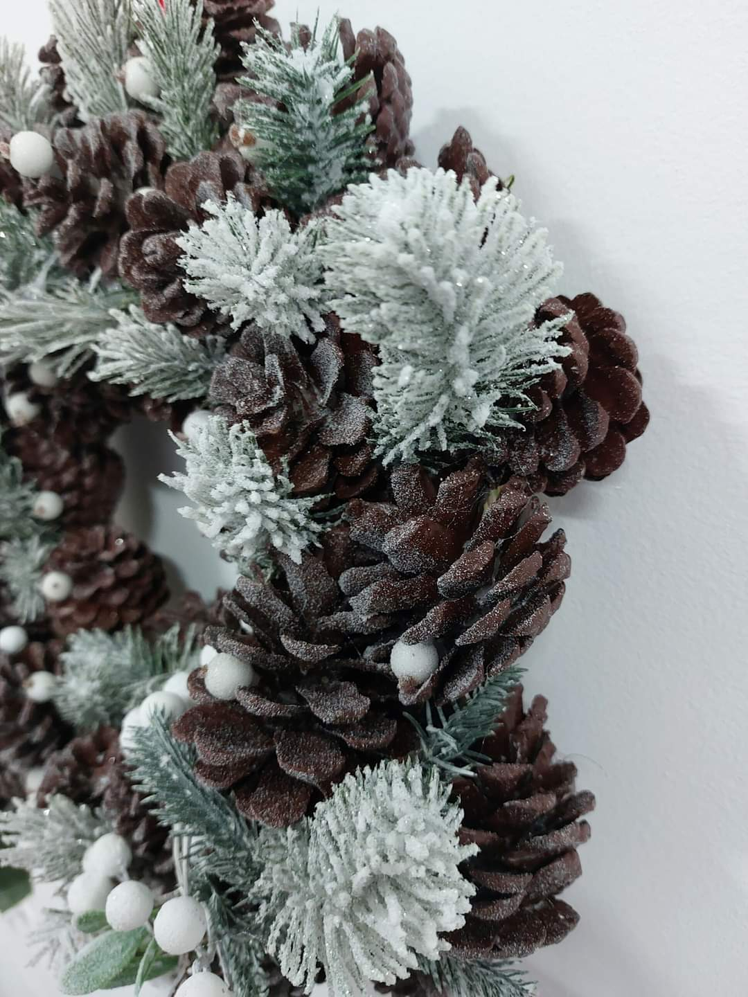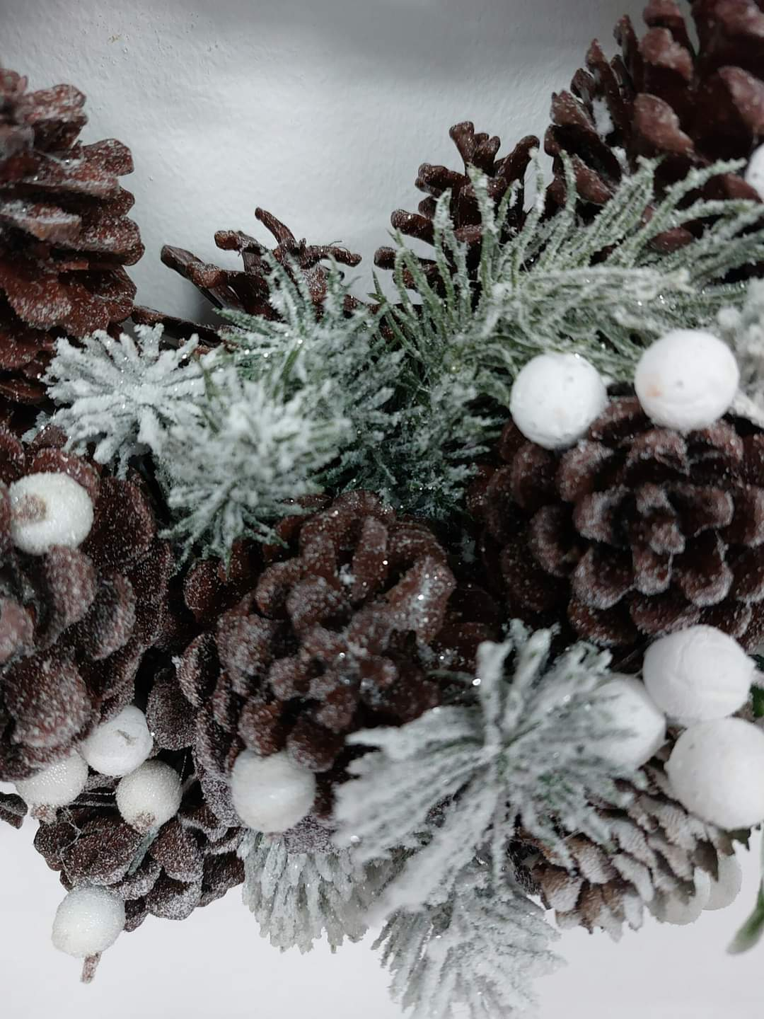 Coronita de Craciun, handmade, brad alb, conuri, 35 cm
